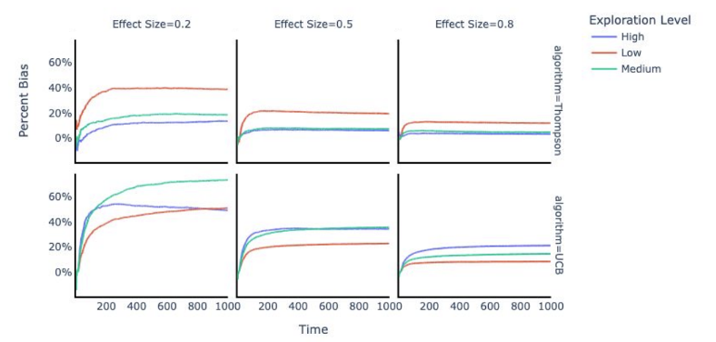Quantifying and reducing bias in treatment effect estimates from multi-armed bandits